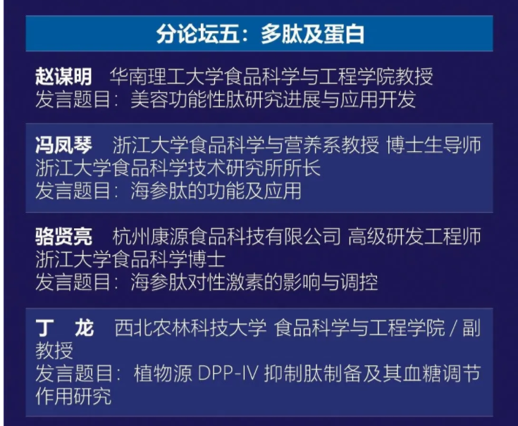 冯凤琴教授(杭州食品康源创始人)在对于活性肽的作用功效上,以自己团队的研究终端产品海参肽为例,用科学性的数据支撑,再一次强调了肽在人类健康方面所具有的不可替代的作用。