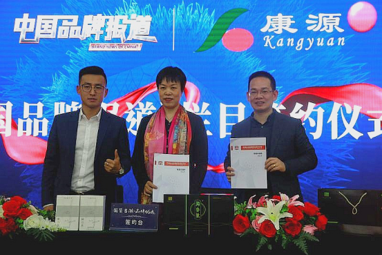 (左:《中国品牌报道》主编付佳利先生 中:杭州康源食品冯凤琴教授 右:杭州康源食品黄善撑先生)