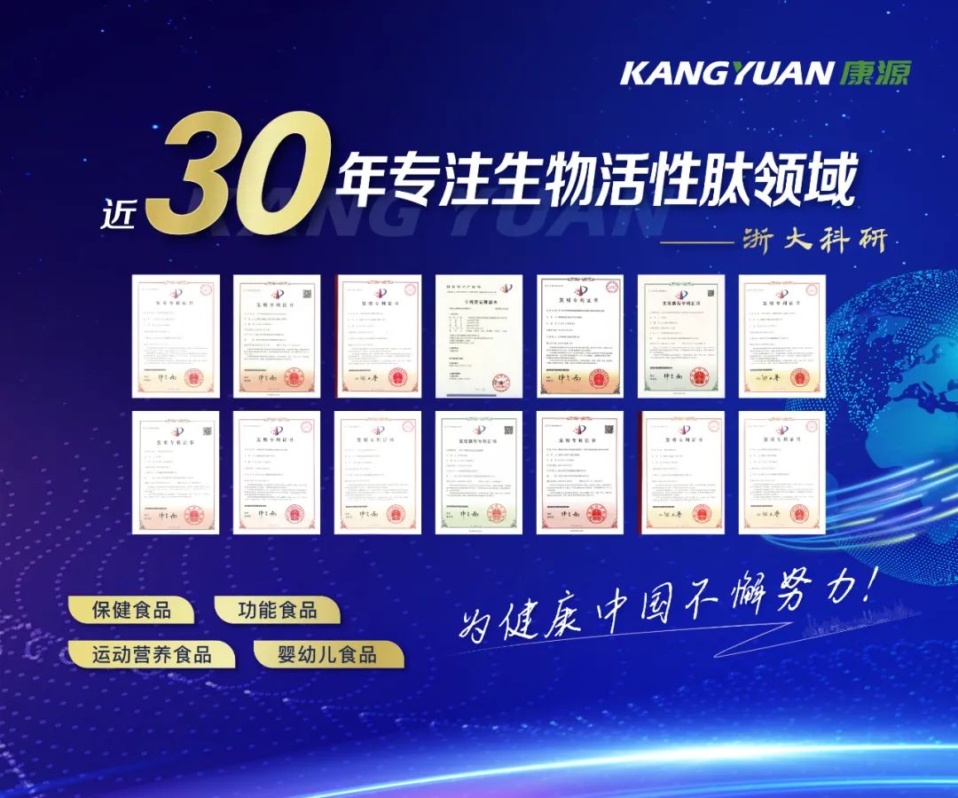 公司和浙江大学战略合作,2005年建立了专业研发中心(浙大-康源研发中心),由30多名教授、副教授、高工、博士及硕士研究生组成的高水平专业科研团队,20余年聚焦生物活性肽的研究开发。